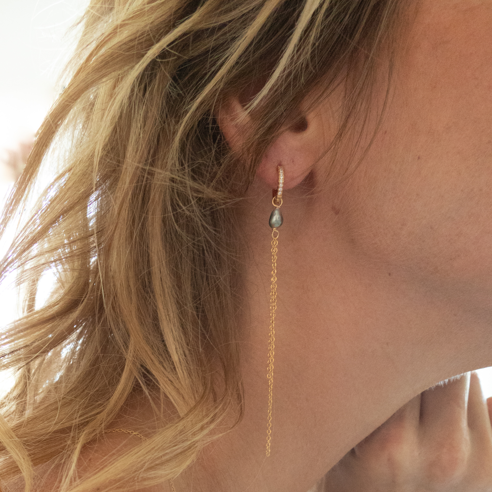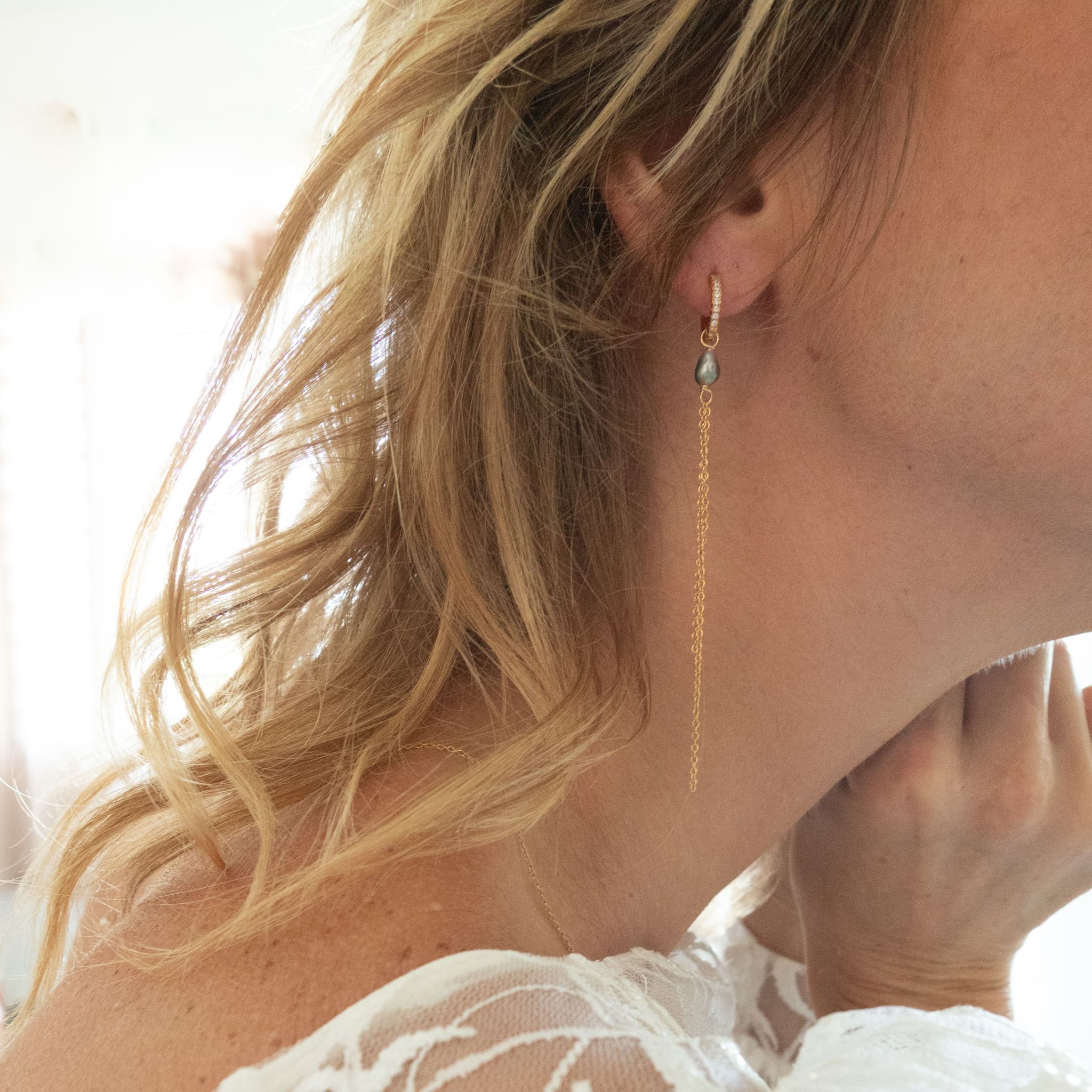 • Matériaux : Keshis de Tahiti (perles naturelles), créoles en plaqué or 750 (qualité française), chaines en gold filled 14K